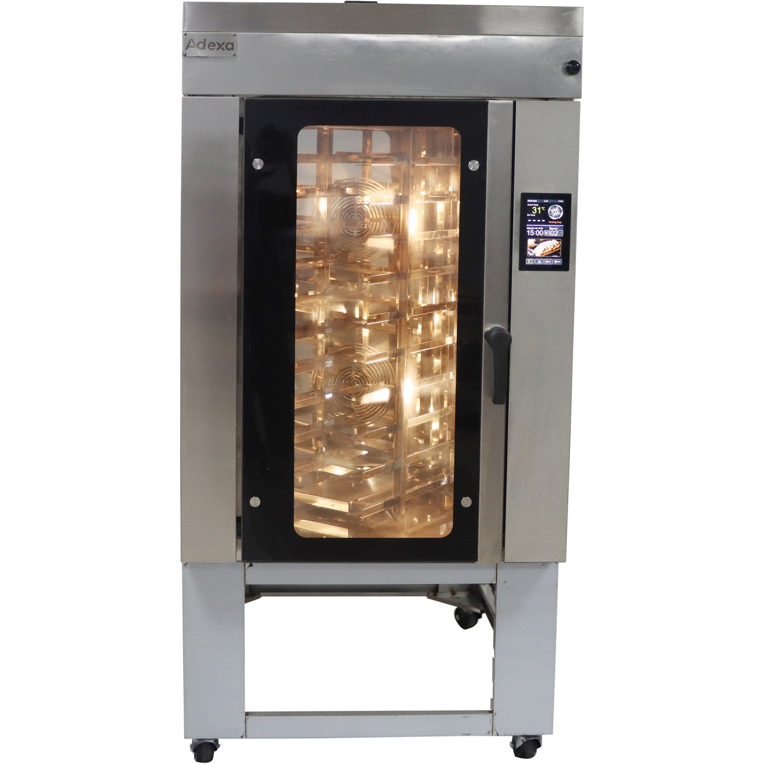 Featuring a touch control panel, integrated steam function, and internal lighting, this oven offers precise temperature management up to 300°C for consistent and efficient results. Its compact yet powerful design accommodates 10 trays (40×60cm) with a free 4-tray extended trolley included for added convenience.