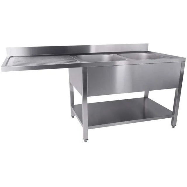 Commercial Sink For Dishwashers 2 Bowls Left Bottom Shelf Splashback 1600x600x950mm | Yls166 Sbr2