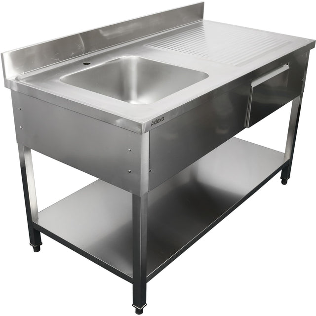 Commercial Sink Stainless Steel 1200x600x950mm 1 Bowl To The Left 1 Drawer Splashback | Dsa120601 Dl