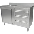 Commercial Sink With Cupboard And 3 Drawers Stainless Steel 1 Bowl Left Splashback 1200x600x950mm | Vsc126 Lbs3 Rd