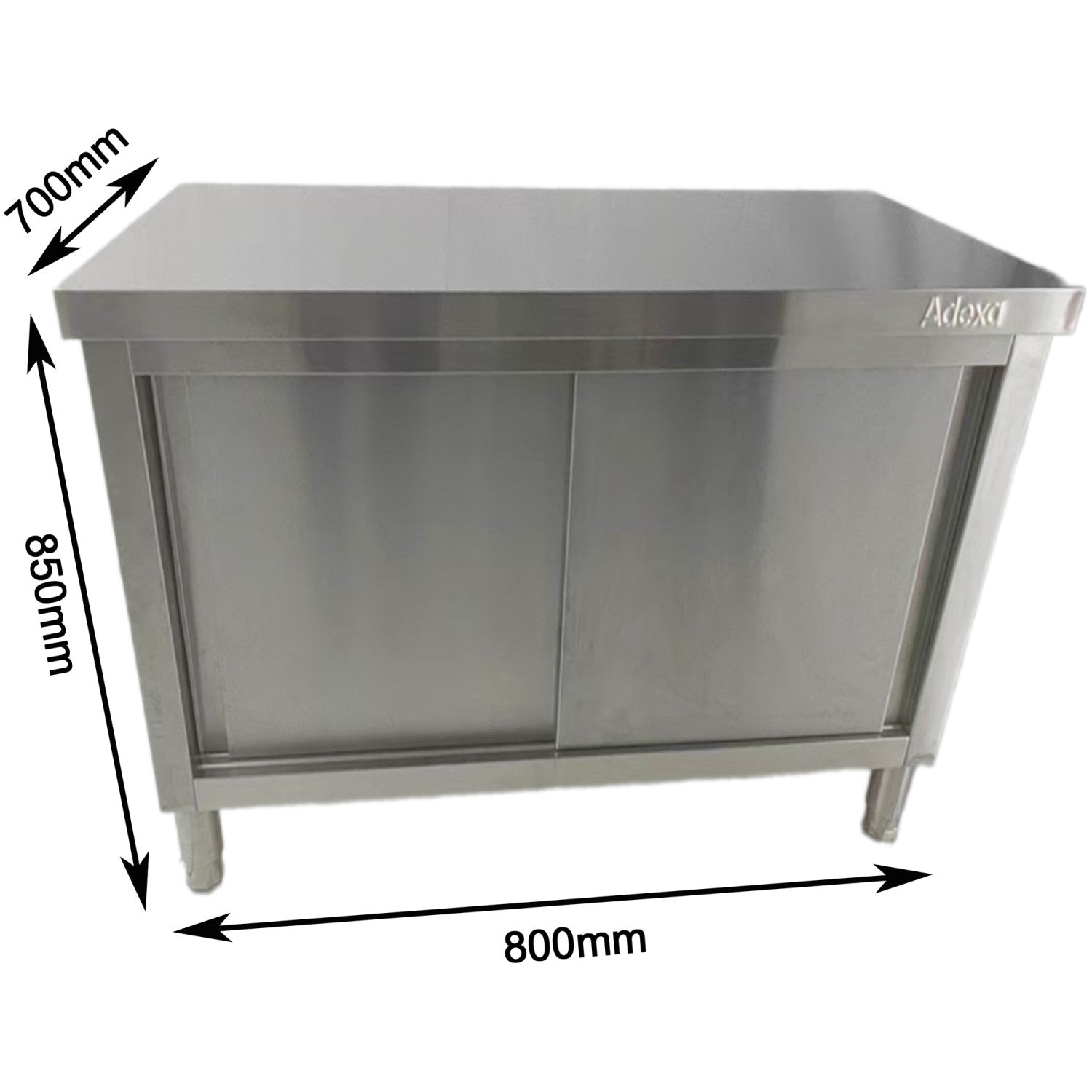 Commercial Stainless Steel Sliding Door Work Table Cabinet 800x700x850mm | Qnh322 is backordered and will ship as soon as it is back in stock.