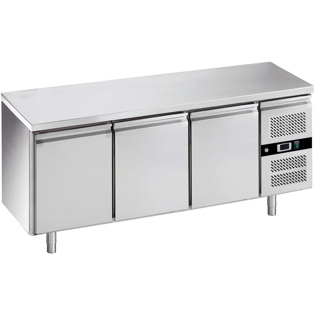 This 3-door counter fridge fits seamlessly beneath standard worktops and doubles as usable prep space thanks to its reinforced stainless-steel top.