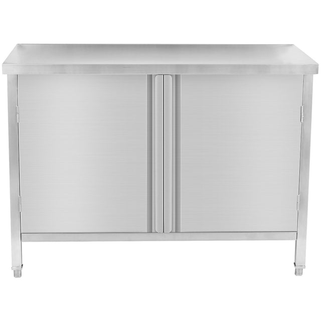 This stainless steel cabinet is perfect to use in place of a work table in your restaurant or catering establishment.
