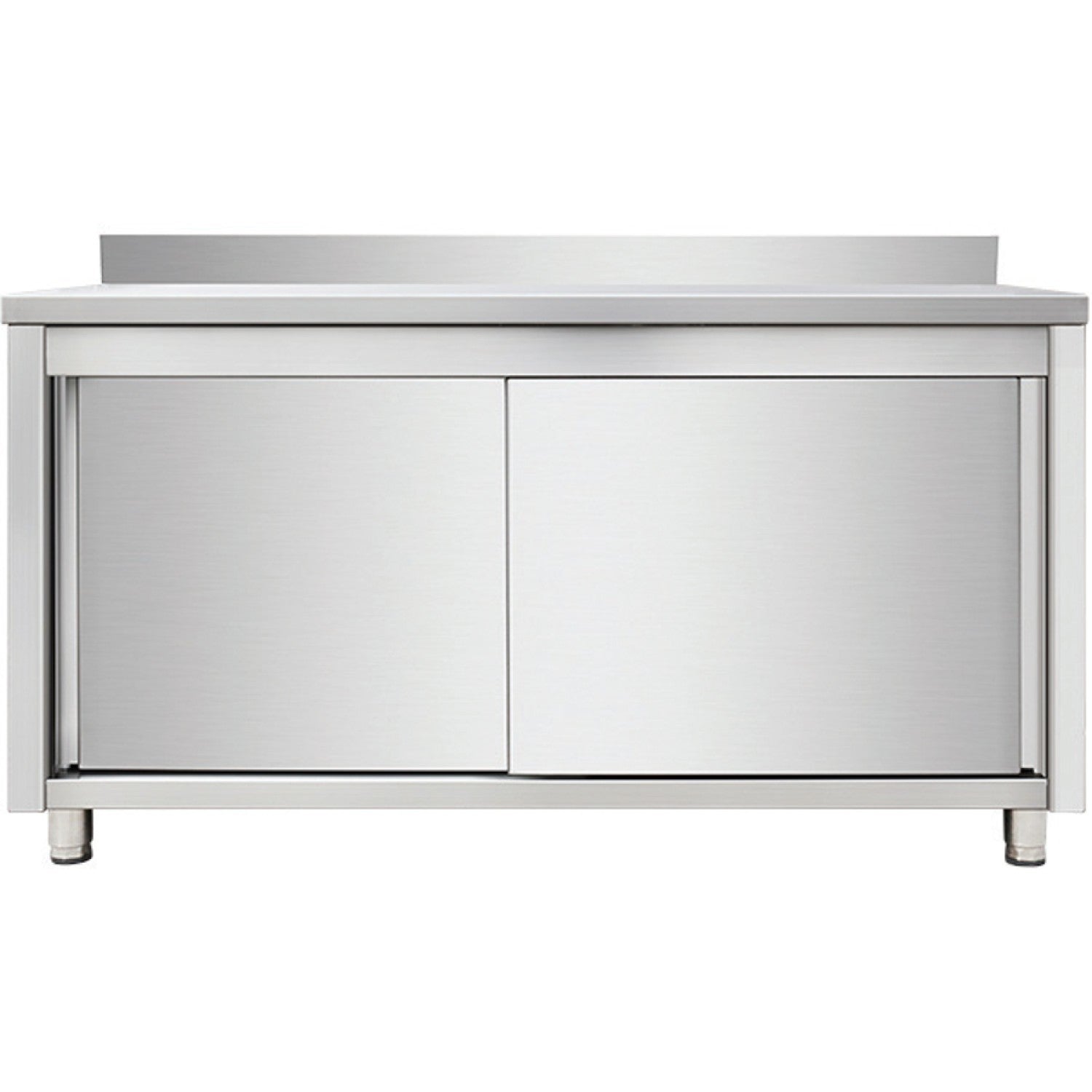 Commercial Worktop Floor Cupboard Sliding Doors Stainless Steel Width 1000mm Depth 600mm Upstand | Thasr106 A is backordered and will ship as soon as it is back in stock.