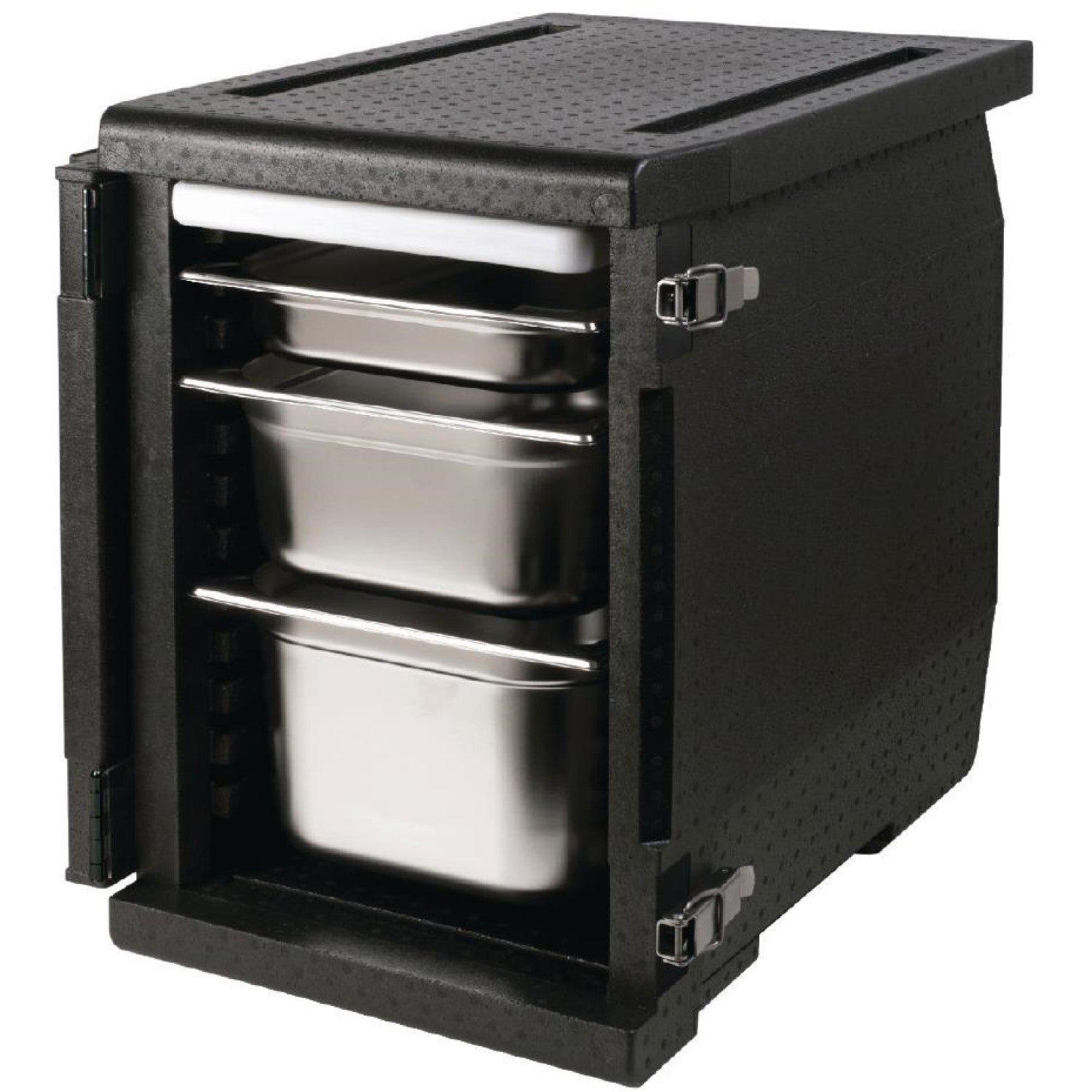 - The GN sized boxes can be used with either stainless steel, polycarbonate or high heat polysulfone food pans making them perfect for a variety of uses.