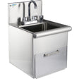 Install a convenient and useful sink in your business with this hand wash sink! This hand sink features a gooseneck faucet with excellent reach and clearance. The towel dispenser is built into a magnetic-latch door for easy access and safe keeping when not in use, and the soap dispenser is designed for easy accessibility and use. The backsplash helps keep your walls safe from water when in use, and thanks to its basket drain, this sink's plumbing is protected against large objects and clogging.