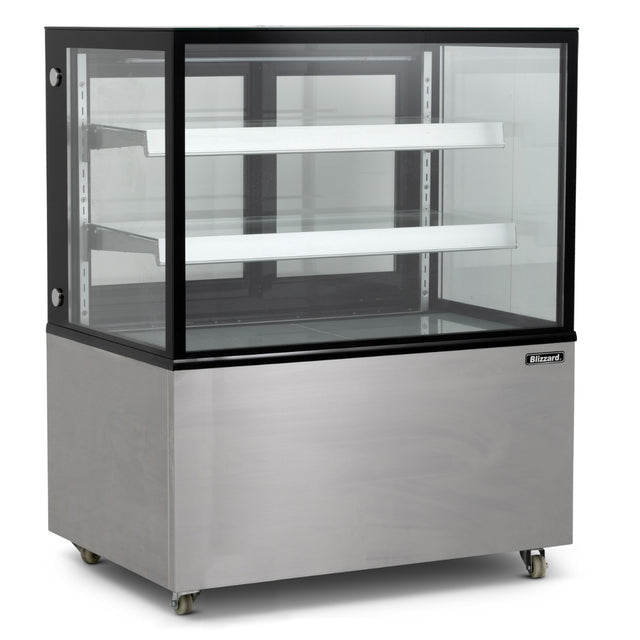 - Stainless steel construction|Double glazed glass|2 x adjustable glass shelves|Rear sliding doors for easy management|LED lighting from top & underneath of each shelf|4 castors with 2 braked|Ideal for cafes and retail outlets looking to showcase and sell fresh food|