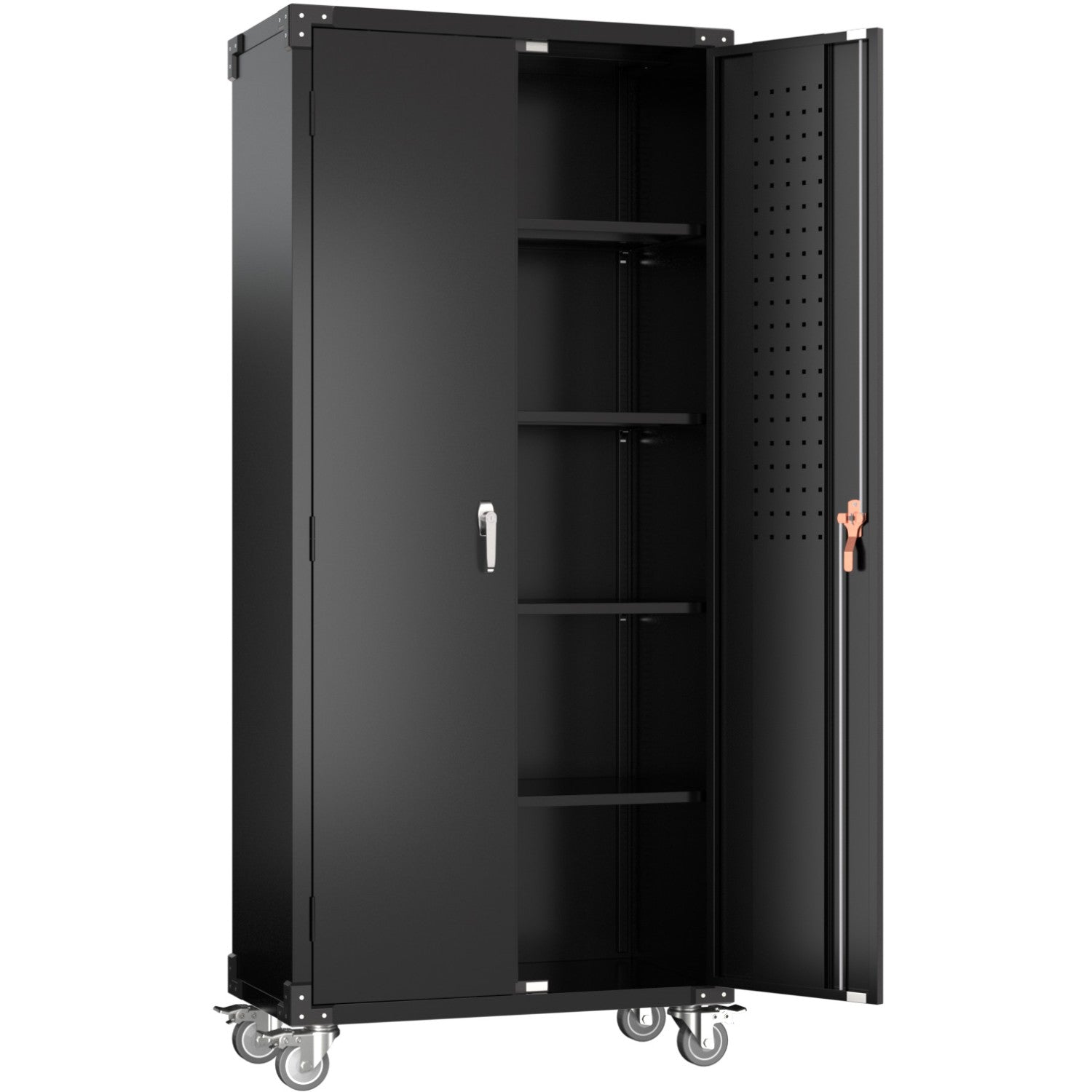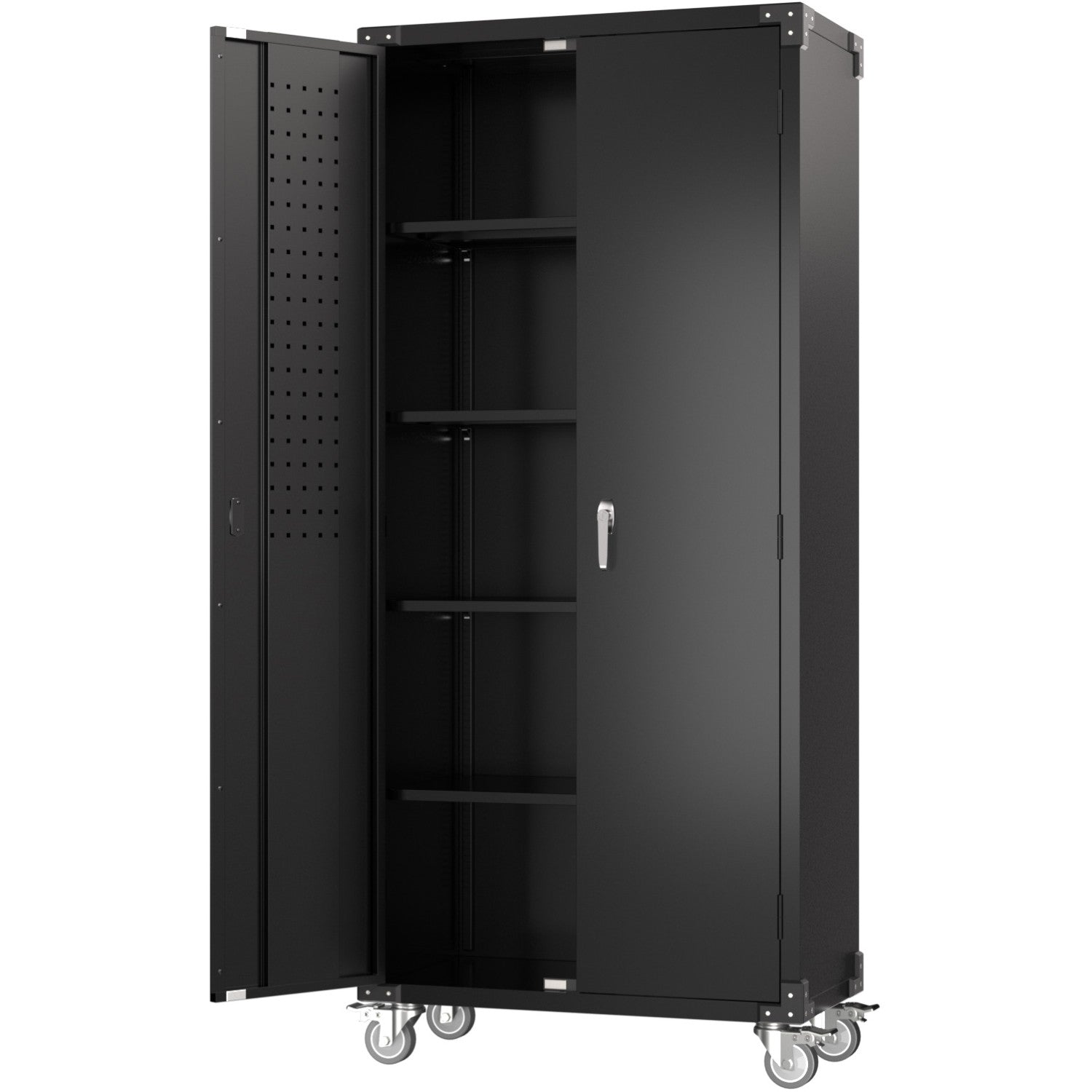 This steel 2 door tool cabinet is perfect to use in any warehouse or workshop to keep your tools organised. Including 4 shelves and a lock, black unit provides extra security for the at home hobby crafter or tradesman.