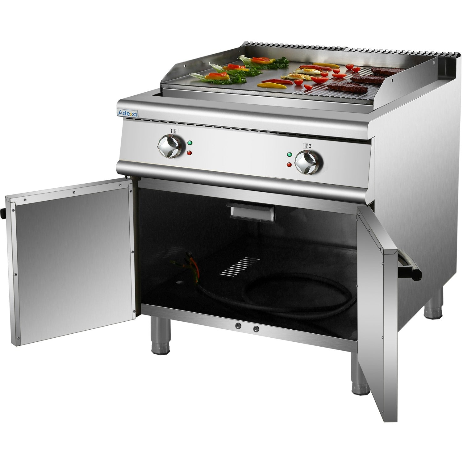 Professional Electric Griddle With Cabinet Base 12k W Smooth/Ribbed 900mm Depth | Her906 A