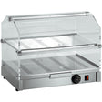 This commercial showcase warmer is the ideal solution to the problem of limited space in a restaurant, café, shop or hotel. With a water container to keep the food moist and delicious. An efficient and practical piece of catering machinery with front and rear openings.