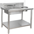 With matching baskets included, the table allows for clean separation of wet and dry breading stages. A built-in rear splash guard helps contain mess, while the lower shelf provides convenient storage space for extra trays, containers, or ingredients. Built entirely from stainless steel, it offers outstanding durability, easy cleaning, and long-lasting performance.