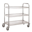The Hamoki Serving Trolley is made of stainless Steel. This 3 tier Stainless steel serving trolley is ideal for many applications.