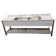 Stainless Steel Double Sink Double Drainer with Shelf and Splashback 240x65x90cm