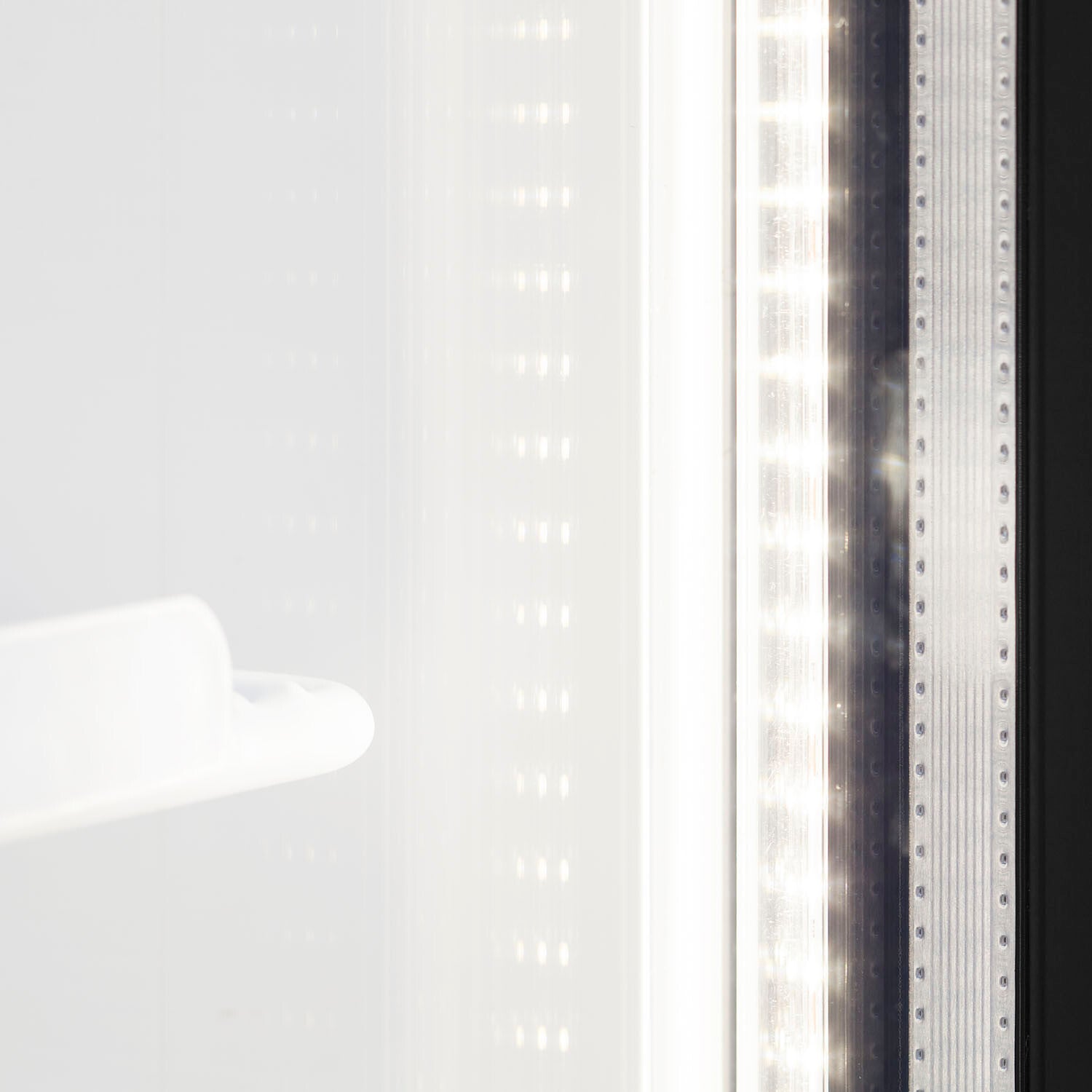 The FSC-H range combines a quality unit at a very competitive price. Excellent build quality with a powerful fan assisted refrigeration system, sturdy hinged door, and LED light canopy that can have branding added to create extra impact. Excellent vertical LED lighting (2 light strips on each door) really helps product stand out to customers.