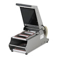 Seal pre-shaped trays with a plastic film. Maximum film width 150 mm.