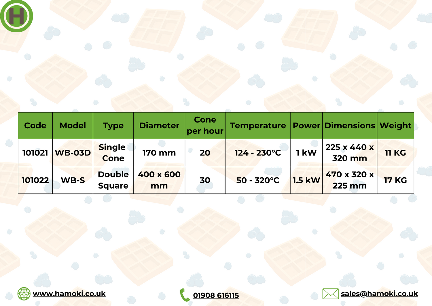 The Hamoki Single Cone Waffle Maker is perfectly suited for use in ice cream parlours, mobile catering outlets, convenience shops and other food establishments, easily producing up to 20 crisp cone waffles every hour.